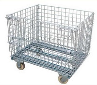 移動可能なワイヤメッシュコンテナ/モバイルスチールメッシュパレットケージ重い工具の収集と保管